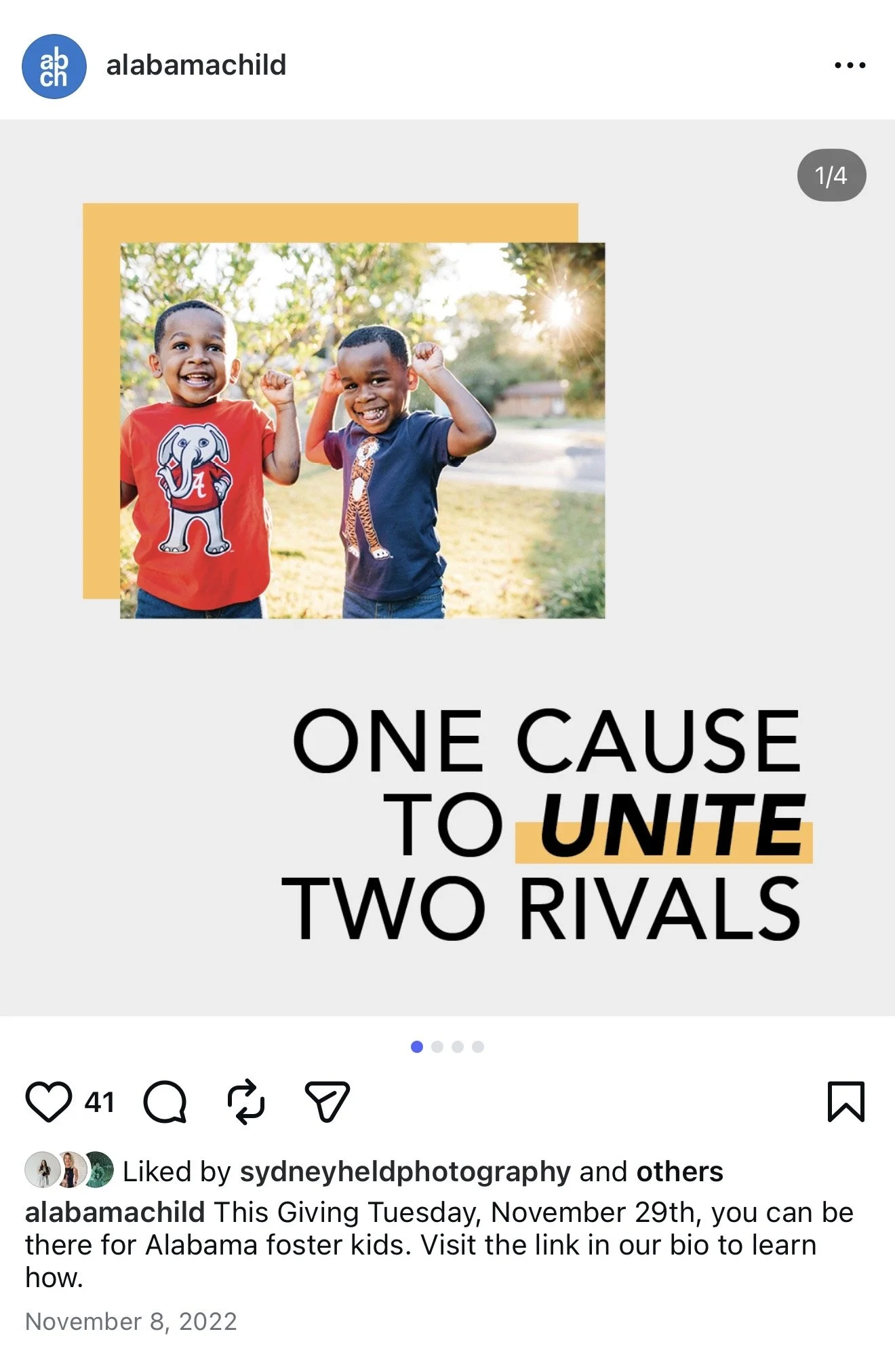 When ABCH expanded foster care services into Tuscaloosa and Auburn, the state's biggest rivalry became the backdrop for one of their most ambitious Giving Tuesday campaigns yet.